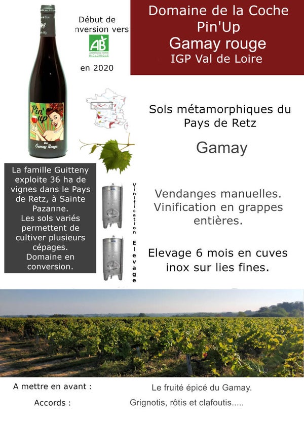 Dom.de la Coche Pin’UP Gamay igp Val de Loire 2024 rouge 75cl